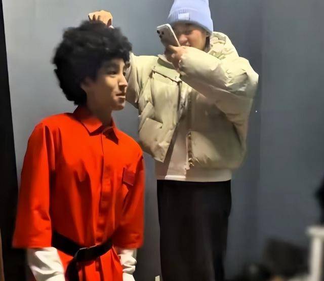 两人在后台拍了一段合体视频,画面里全红婵手里拎着王俊凯在剧中角色的橘色爆炸头假发。